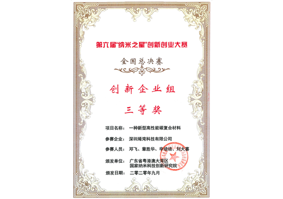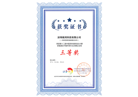獎項名稱 : 第七屆“創(chuàng)客廣東”新能源中小企業(yè)創(chuàng)新創(chuàng)業(yè)大賽三等獎
