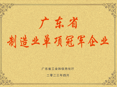 獎項名稱 : 廣東省制造業(yè)單項冠軍示范企業(yè)