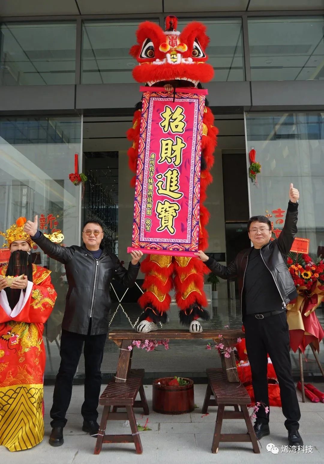 烯灣員工們也爭(zhēng)相與醒獅合影